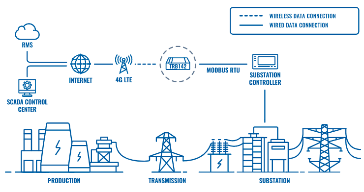 По сути, энергетическая инфраструктура состоит из производства и передачи энергии. Атомные, угольные, газовые и электростанции, работающие на возобновляемых источниках энергии, вместе вырабатывают электроэнергию и передают ее в сеть с использованием ряда подстанций высокого, среднего и низкого напряжения и которые, в конечном итоге, обеспечивают электроэнергией дома и предприятия по всему миру. Все этапы производства и передачи энергии должны тщательно контролироваться, чтобы инфраструктура производила достаточно энергии, которая эффективно распределяется по всей энергетической сети. Все это было бы невозможно, если бы компоненты не были бы подключены к сети и контролировались централизованно профессиональными инженерами и передовыми системами SCADA. Подстанции имеют сложную сеть автоматизации, которая управляется контроллером. Чтобы включить умную сеть, их нужно подключить к центральной системе SCADA через Интернет. Даже при наличии проводного подключения к сети Интернет невозможно обеспечить на 100% бесперебойную работу, которая необходима для контроля всей инфраструктуры производства и передачи электроэнергии.