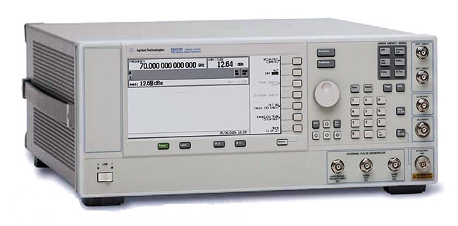 Генератор ВЧ E8257D-520: Частотный диапазон 250 кГц … 20 ГГц; Высокое разрешение выходгой частоты 0,001 Гц; Высокий уровень выходной мощности -20 … +10 дБмВт (опция); Разрешение 0,01 дБ; Погрешность установки уровня 0,6 ... 2,5 дБ; Низкий уровень фазовых шумов; Интерфейс GPIB; Опции аналоговой модуляции: аттенюатор и модуляции АМ, ЧМ, ИМ, ГКЧ; Масса 22 кг.