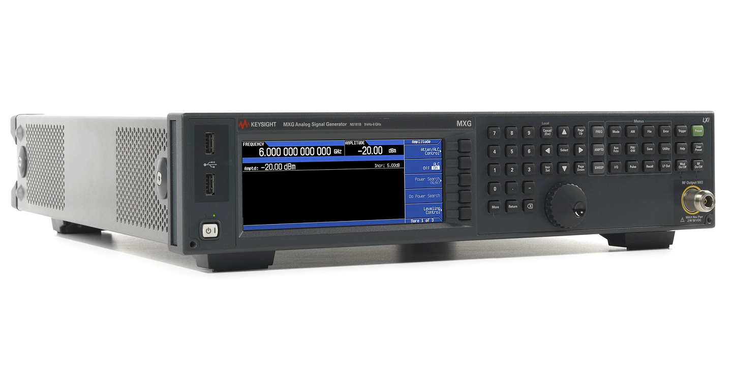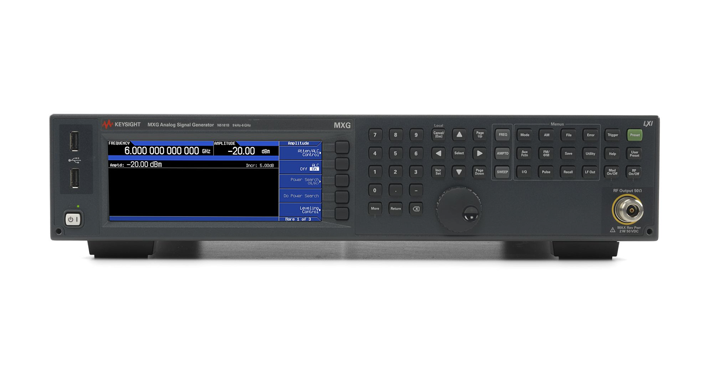 Аналоговый генератор ВЧ-сигналов Keysight N5181B MXG серии X охватывает диапазон частот от 9 кГц до 6 ГГц. Благодаря возможности точной настройки он может использоваться в качестве эталонного передатчика в процессе исследований и разработок.