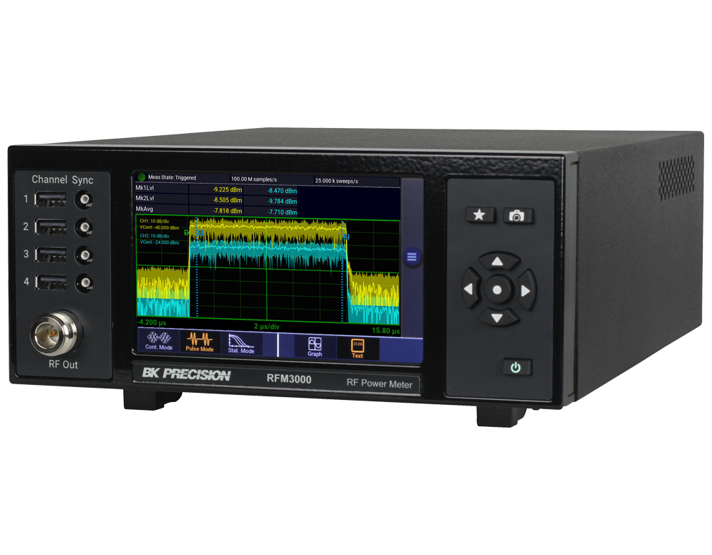 Измерители серии RFM3000 работают в сочетании с USB-датчиками пиковой мощности серии RFP3000 от B&K Precision, чтобы расширить их возможности и устранить необходимость в удаленном компьютере. Это настольное решение поддерживает захват, отображение и анализ пиковой и средней РЧ-мощности как во временной, так и в статистической областях с помощью интуитивно понятного мультисенсорного дисплея.