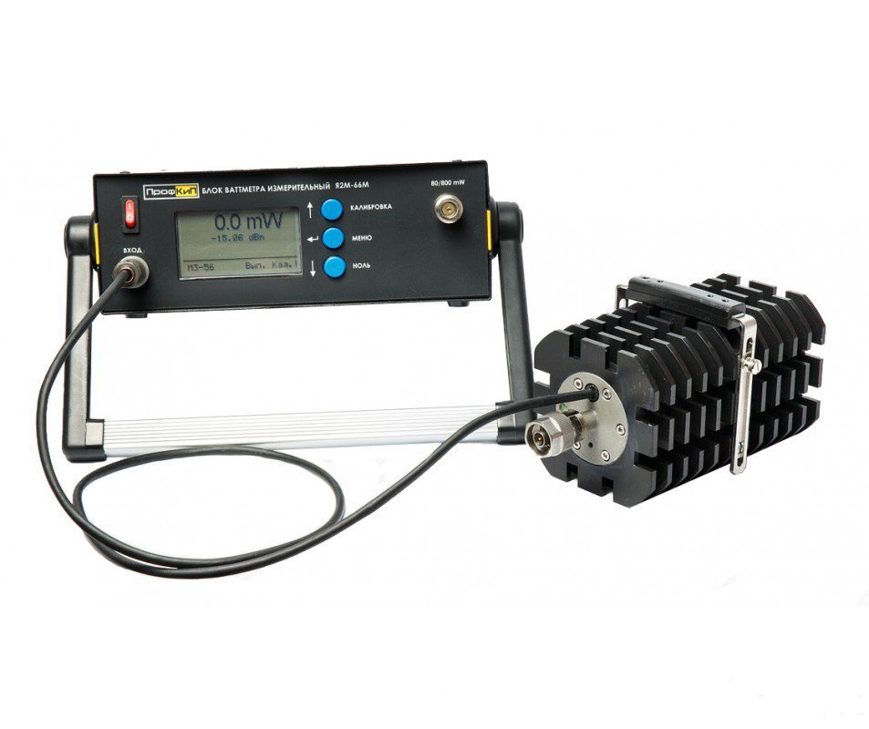 Ваттметр поглощаемой мощности ПрофКиП М3-56 предназначен для измерений среднего значения мощности непрерывных и импульсно-модулированных сигналов. Принцип действия ваттметра основан на преобразовании СВЧ мощности в тепловой вид энергии и измерении образуемой на выходе преобразователя приемного коаксиального (ППК) термоэлектродвижущей силы (термо-ЭДС), которая пропорциональна подведенной к нему мощности СВЧ сигнала. Конструктивно ваттметр поглощаемой мощности состоят из блока ваттметра измерительного ПрофКиП Я2М-66М (БИ) и ППК, подключаемого к БИ.
