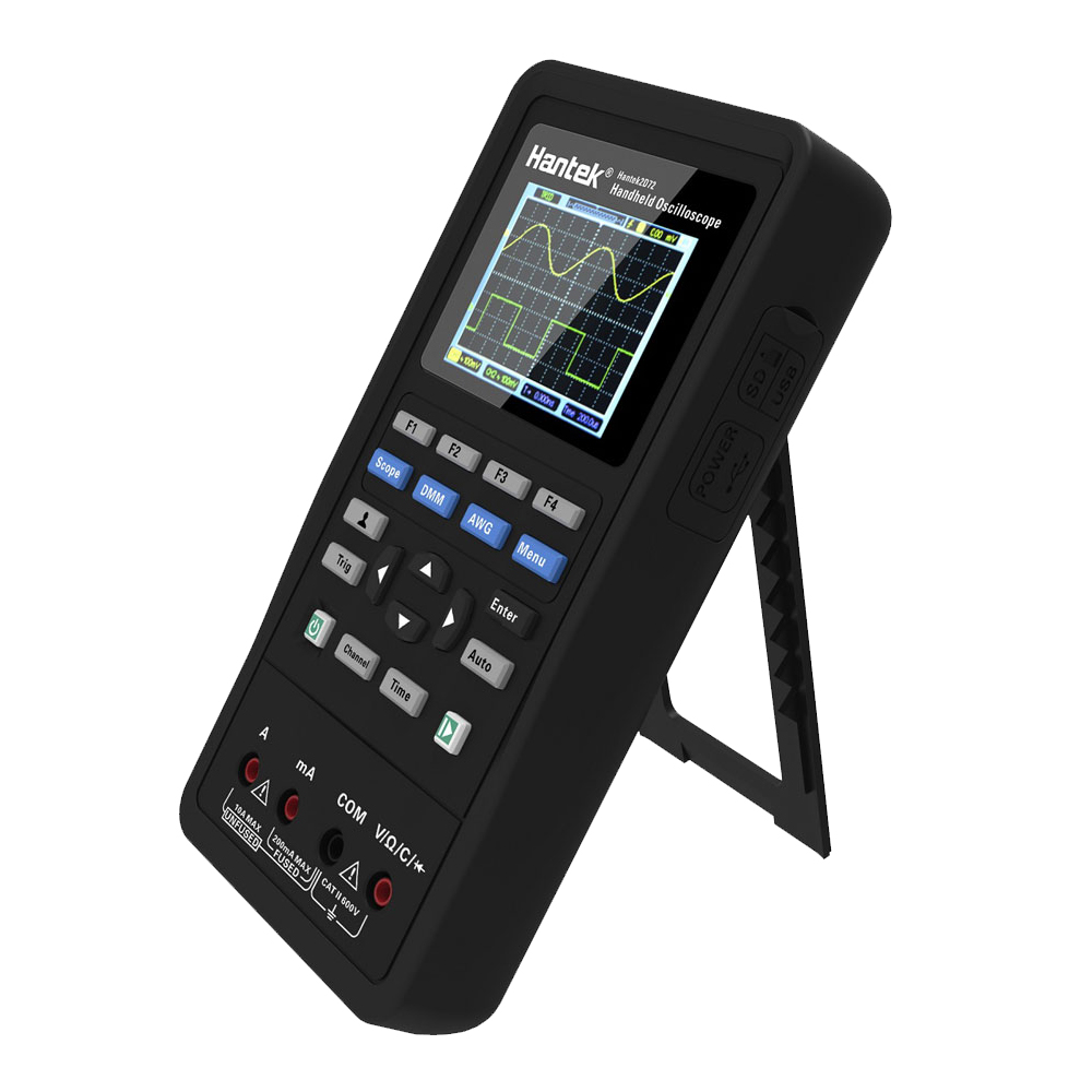 Совершенно новый портативный осциллограф серии Hantek2000, продолжающий компактную и легкую концепцию, но с новым поколением многофункционального тестера 3 в 1: осциллограф, источник сигнала и мультиметр; Небольшой объем некоммерческого захвата одной рукой; Подвесная стойка была разработана для поддержки регулировки под разными углами; Сверхнизкое энергопотребление, интерфейс зарядки типа C, каждые 2 часа зарядки аккумулятора позволяют работать один полный день или два месяца в режиме ожидания; Цветной ЖК-экран высокой четкости, четкий и деликатный; Минималистичный дизайн клавиатуры упрощает работу, прост в использовании.