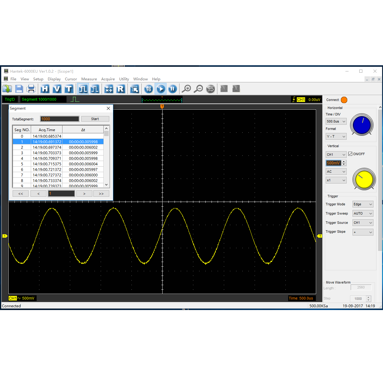 - Глубина памяти 128Mpts, фрагментация 80000 секций. Сегментный захват захватывает событие, удовлетворяющее условию, с очень малым временем простоя.