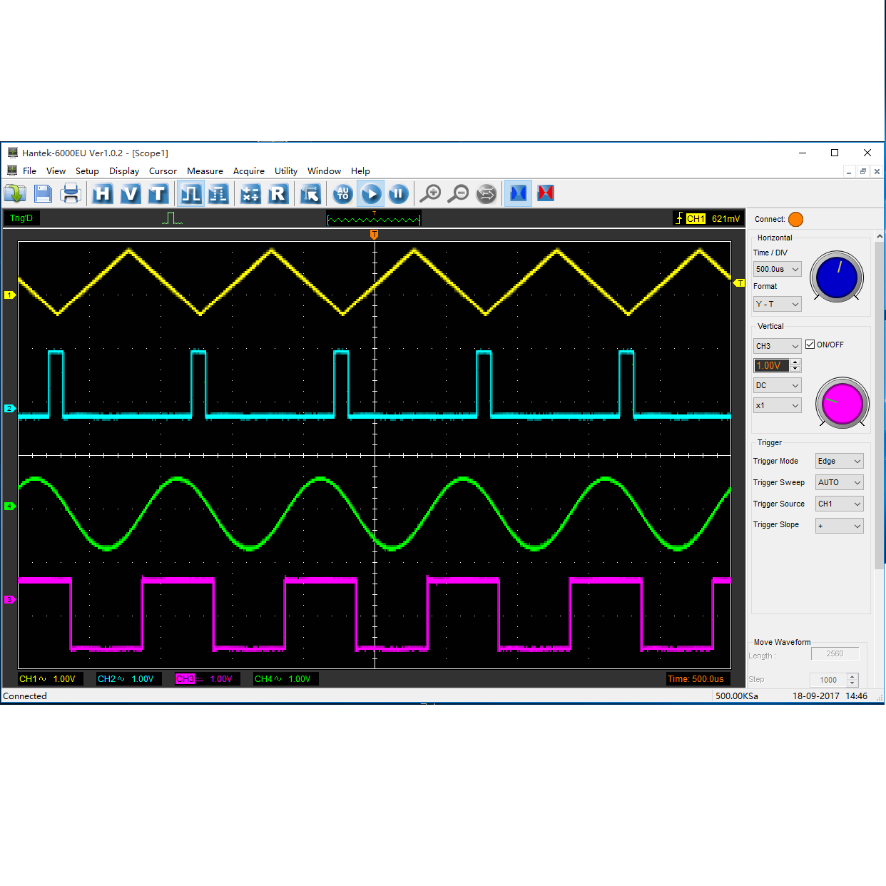 - Пройден/не пройден тест, находчивая функция триггера, динамическое отслеживание курсора, функция записи формы волны и функция воспроизведения. Рабочий интерфейс аналогичен настольному осциллографу, прост в эксплуатации и имеет высокую производительность.