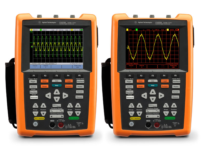 U1610A является первым в мире ручным осциллографом, в котором используется дисплей с разрешением VGA. Этот осциллограф с полосой пропускания 100 МГц обеспечивает проведение измерений, изолированных от цепей заземления, с помощью двух изолированных каналов, соответствующих нормам категории безопасности CAT III 600 V. С частотой дискретизации до 2 Гвыб/с и глубиной памяти 2 Мвыб он захватывает больше информации о форме сигналов с широтно-импульсной модуляцией, выбросах, переходных процессах и последовательностях запуска двигателя. Как и в настольных приборах, режим задержанной развёртки позволяет легко идентифицировать проблемные области, а затем просматривать их в увеличенном масштабе для более детального анализа. Теперь проще просматривать детали сигналов и обнаруживать глитчи.