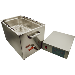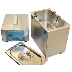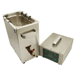 Очистка изделий в ультразвуковых ванночках производится с применением водных растворов технических моющих средств серии "Галс" производства ПСБ-Галс, либо в водных растворах ТМС других производителей, общие требования к которым можно прочитать в статье: "Технологии очистки. Общие положения". Преимущества ультразвуковой очистки заключаются в возможности получения гарантированного результата очистки даже в самых труднодоступных местах, где другие способы очистки невозможны либо малоэффективны, с минимальным участием человеческого труда. Ультразвуковой очистке подлежат изделия из любых металлов, стекла, керамики, а также их комбинации. Перечень основных, далеко не полных, загрязнений, удаляемых с поверхности изделий при помощи ультразвуковой обработки в водных растворах технических моющих средств: