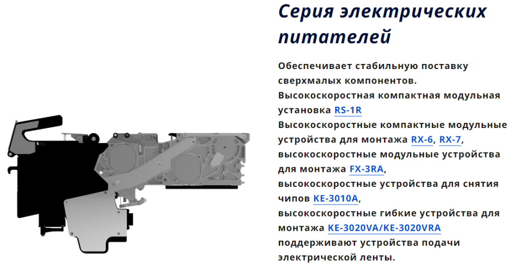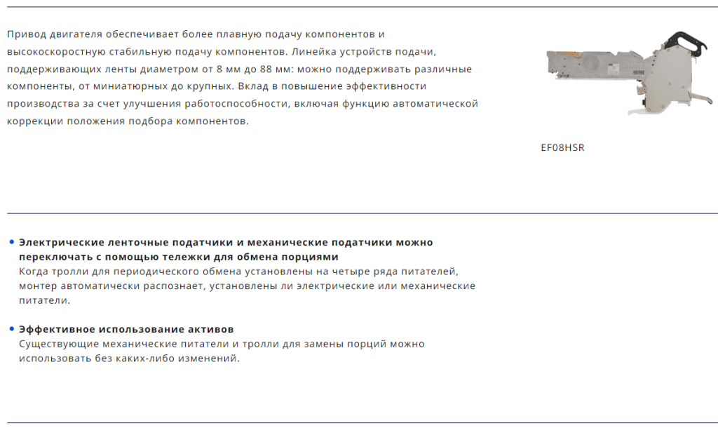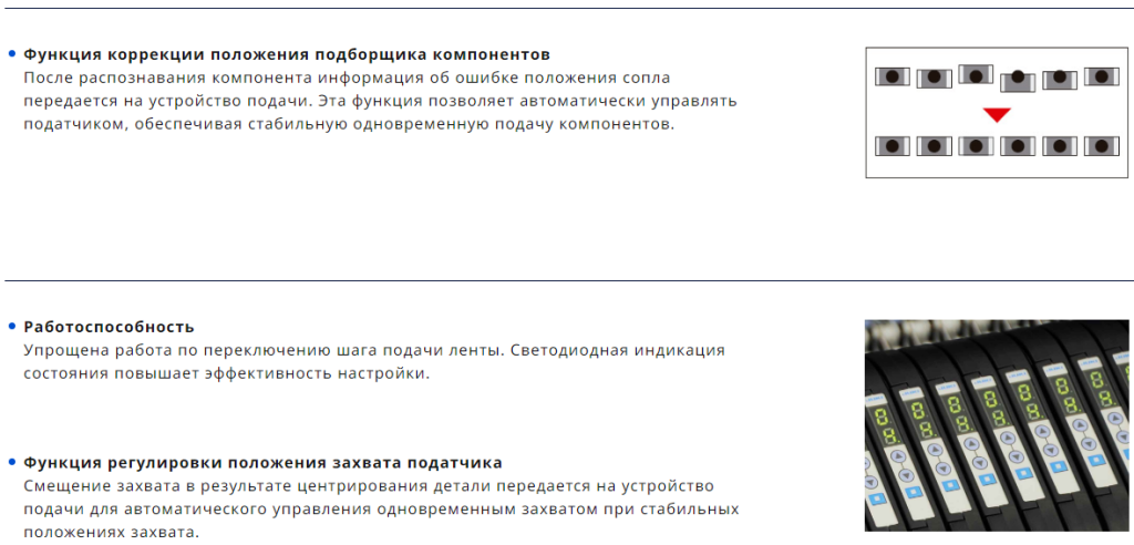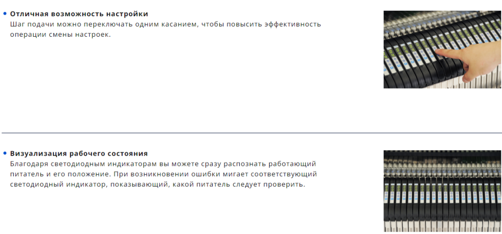 - Питатели нового поколения – компактные, интеллектуальные (CAN-интерфейс), универсальные с возможностью изменения шага ленты, с возможностью «горячей» замены.