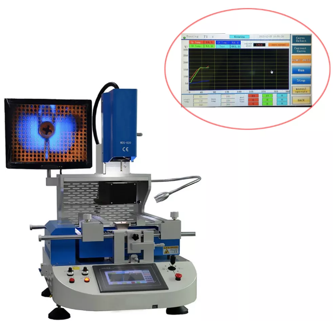2. Централизованное отопление горячим воздухом для BGA и печатной платы одновременно и предварительный нагрев ИК-нагревателя большой площади для нижней части печатной платы чтобы полностью избежать деформации печатной платы во время переработки, верхние или нижние температурные зоны можно использовать отдельно и свободно комбинировать энергию верхнего и нижнего нагревательного элемента.